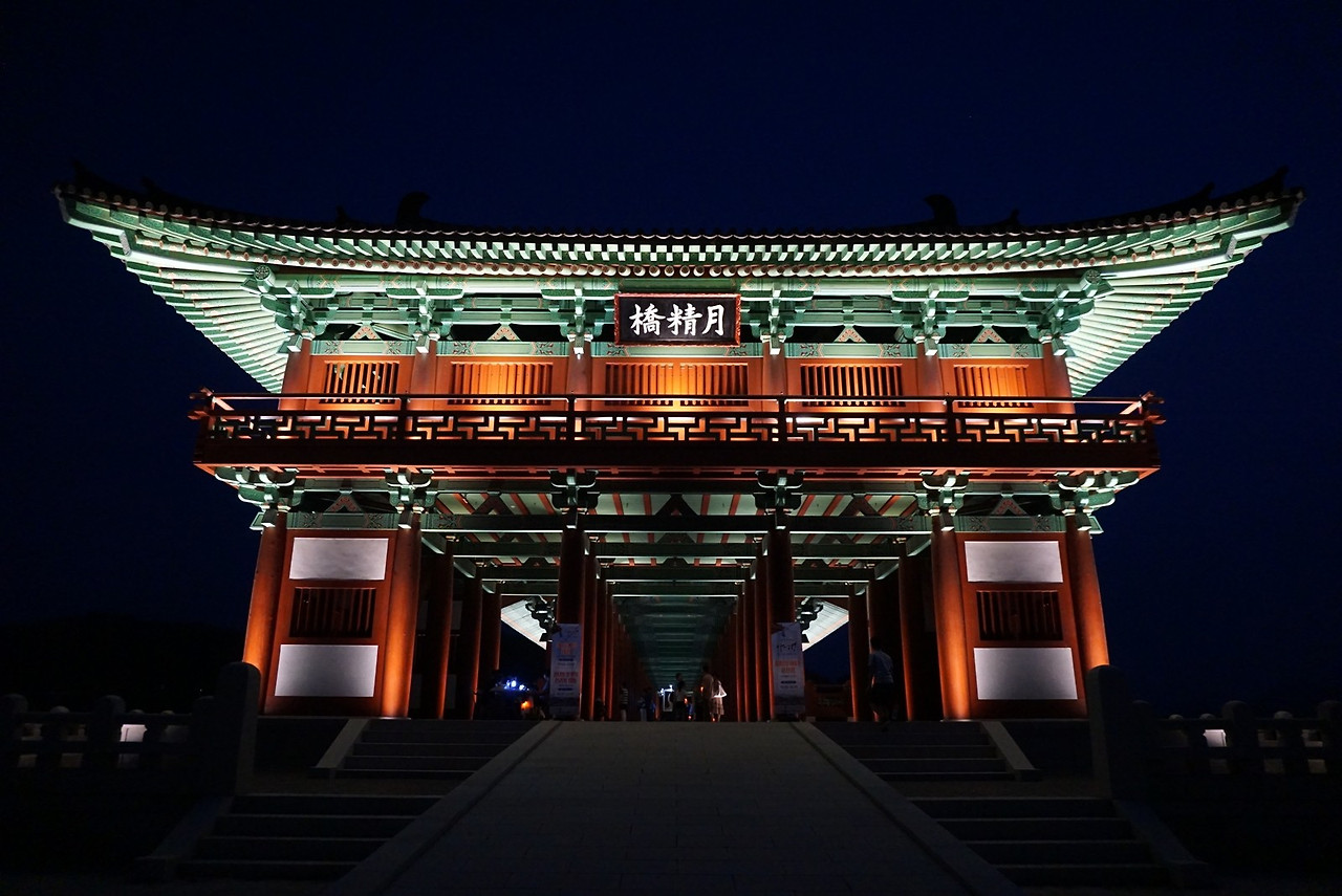 월정교는 신라시대에 있었던 교량을 현대적으로 복원한 구조물로, 낮과 밤의 느낌이 완전히 다른 곳입니다. 특히, 야경 명소로 손꼽히는 만큼, 저녁 무렵 방문하시면 잔잔한 강물 위로 드리운 조명과 목조 건축의 조화로운 실루엣을 감상하실 수 있어요.
