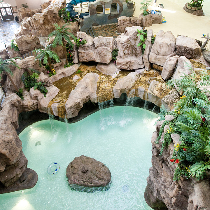 또 풀사이드슬라이드는 맨몸으로 질주하는 어린이 전용 수중 미끄럼틀이며, 실내 어드벤처풀은 난파선 해적과의 싸움이 콘셉트로 갑자기 쏟아지는 물벼락이 짜릿한 즐거움을 선사합니다.