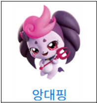 1기의 빌런 티니핑이자 최종 보스 격인 앙대핑은 '이기심과 제멋대로'를 상징하는 티니핑입니다. 해핑을 악동핑으로 타락시킨 장본인이며, 맛나꽃 덩굴과 삼지창으로 분란을 일으키고, 꿀을 흡수해 체력을 회복합니다.