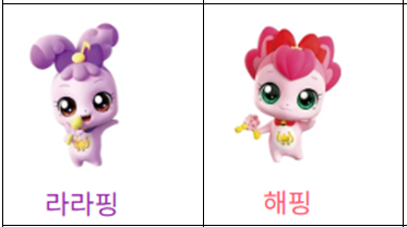 - 라라핑: 즐거움의 티니핑, 쾌활하고 활발한 성격, 즐거움을 전달하는 마법 사용